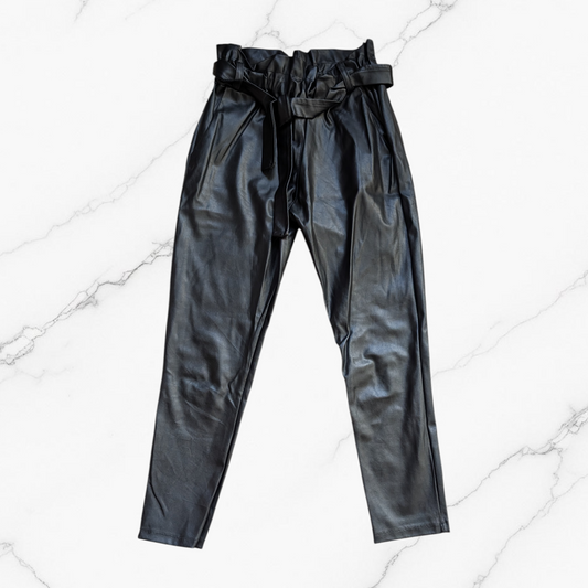 Black Leather-Look Tie Waist Trousers