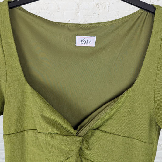 Olive Green Knot Design Flared Sleeve Mini Dress
