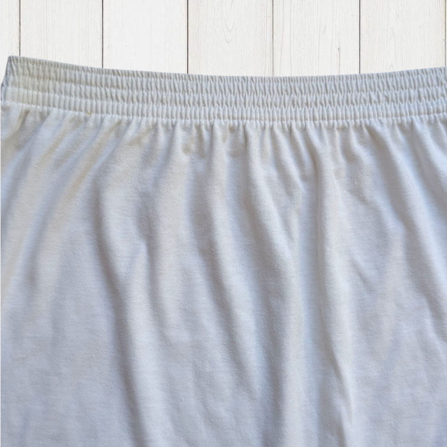 Condition: Small yellow mark on waistband and side, only noticeable up close. Some bobbling due to age