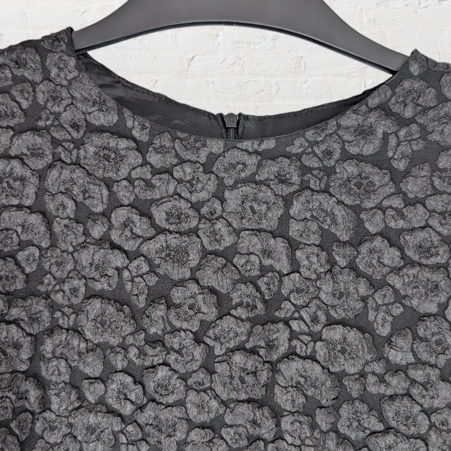 Description: A chic and sophisticated black dress from SHEIN that features a unique textured floral pattern, giving the fabric a beautiful subtle shine. This dress is designed with a sleek high neckline and short sleeves for a timeless, structured silhouette. It is fully lined for comfort and quality, with a discreet zip closure at the back of the neck for a polished finish. Crafted from a 100% polyester fabric, it maintains its shape perfectly while offering a refined, evening-ready look